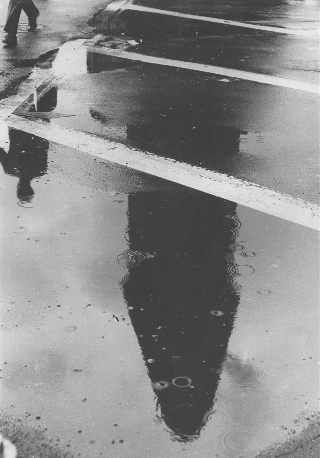 Rudy Burckhardt, "Flatiron Building, Rain," 1973, gelatin silver print, 11 1/4 x 9"