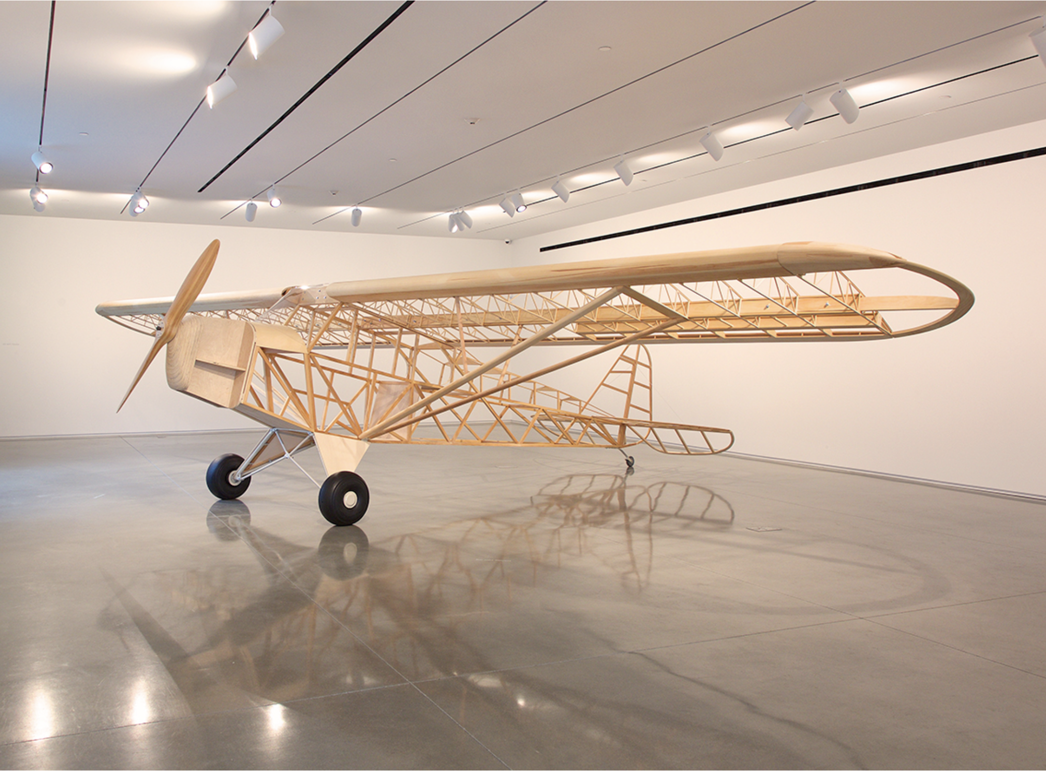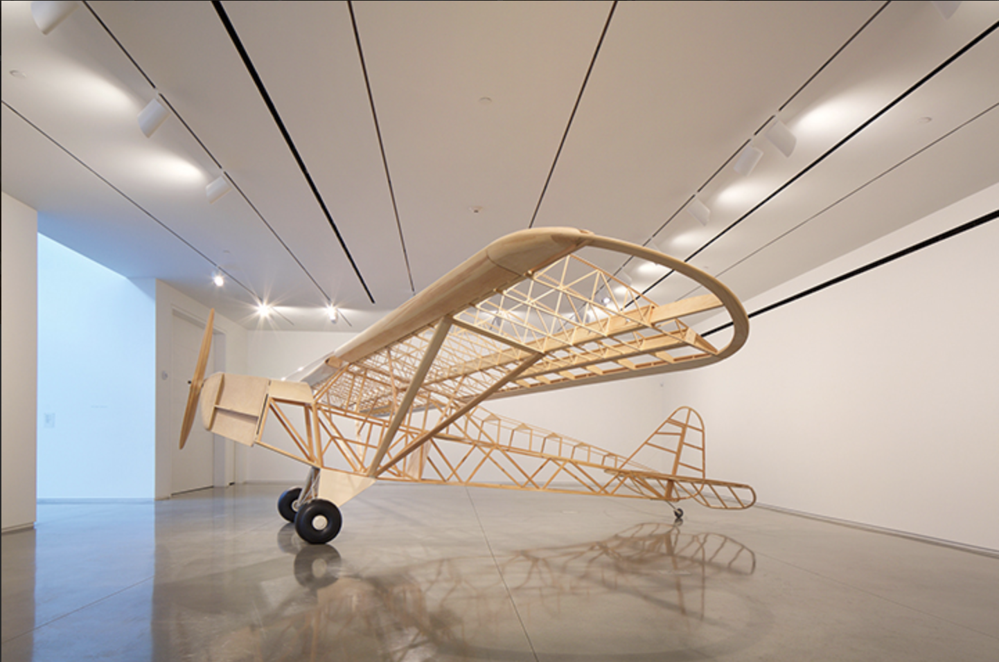 At the same time, by presenting Piper Cub in a gallery setting, Wethli seems to beg the question of the aesthetic nature of mechanical objects and our categorical approach to beauty. By handcrafting the plane (with help from a team of friends and fellow artists in the final stages), Wethli seems to be encouraging us to look for beauty in unexpected places, not least of all in the contemplation of uncertainty, the joys of memory, and the beauty of sheer abstract form.