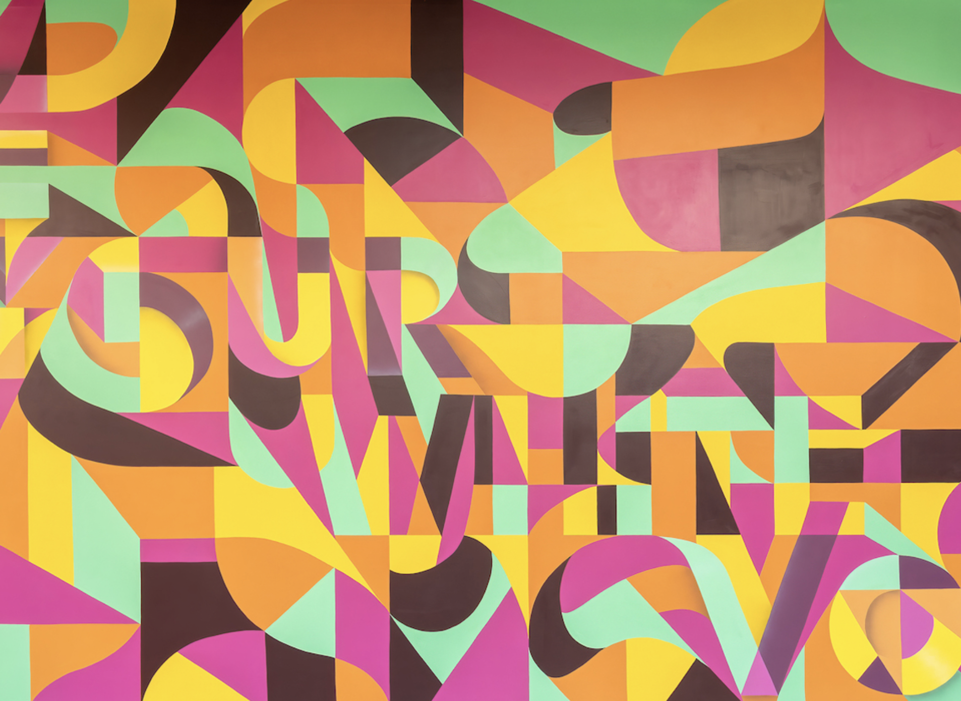 Ryan Adams’ signature, gem-style murals, paintings, and prints display a geometric deconstruction of letterforms using shadow and highlights to create dynamic visual depth, complexity, and movement.