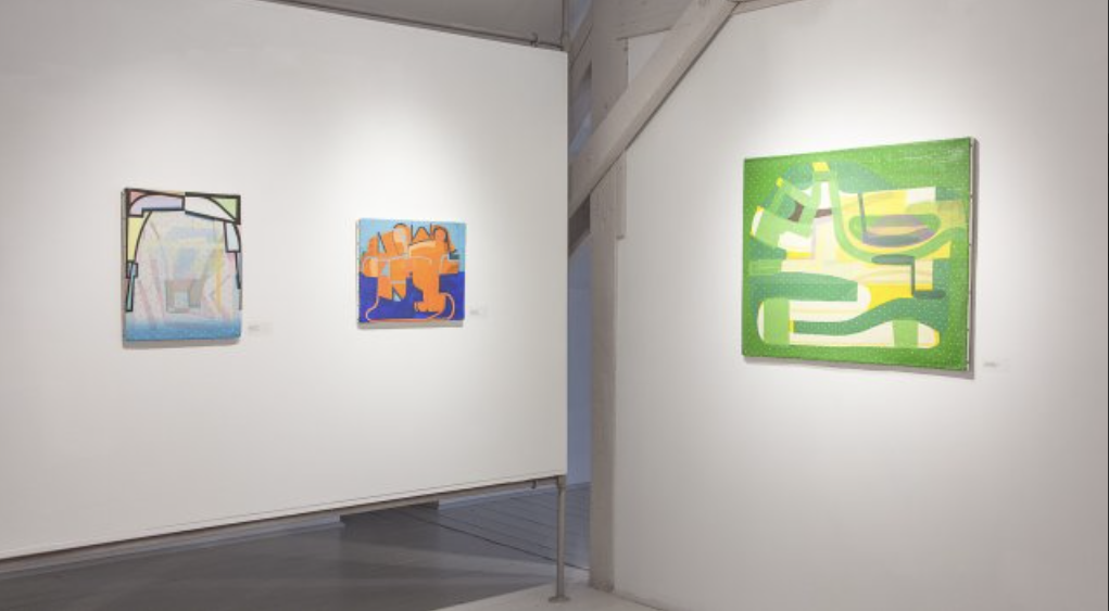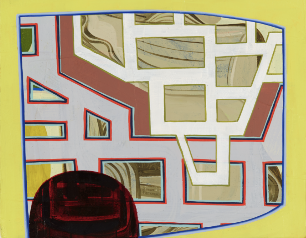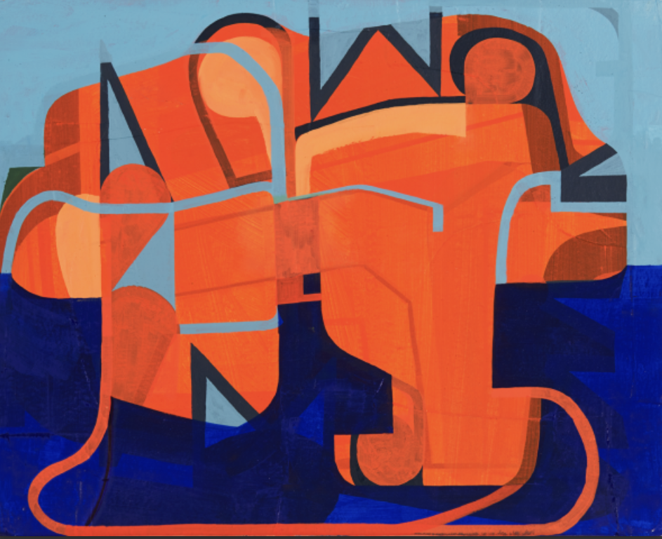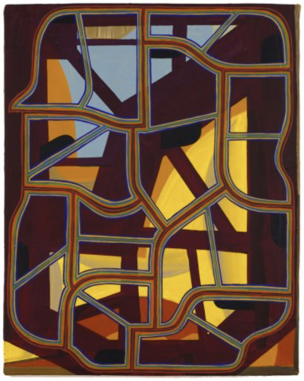 Although abstract, the paintings’ imagery suggests references to architecture, landscape, and human forms, often invoking a sense of pareidolia, a psychological phenomenon whereby the viewer sees a face or some other familiar image in an abstract pattern. “Rather than veering away, like a good and pure abstractionist, I steer into this territory,” says Burckhardt.