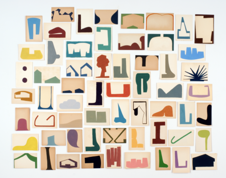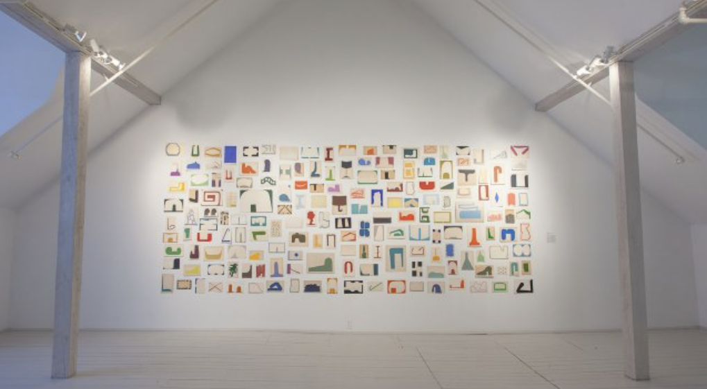 Accompanying the selection of cast paintings is 173 Elements of Painting, an installation that the artist says can be thought of “as similar to the periodic table in chemistry—elemental parts that can be combined to form larger compounds.”