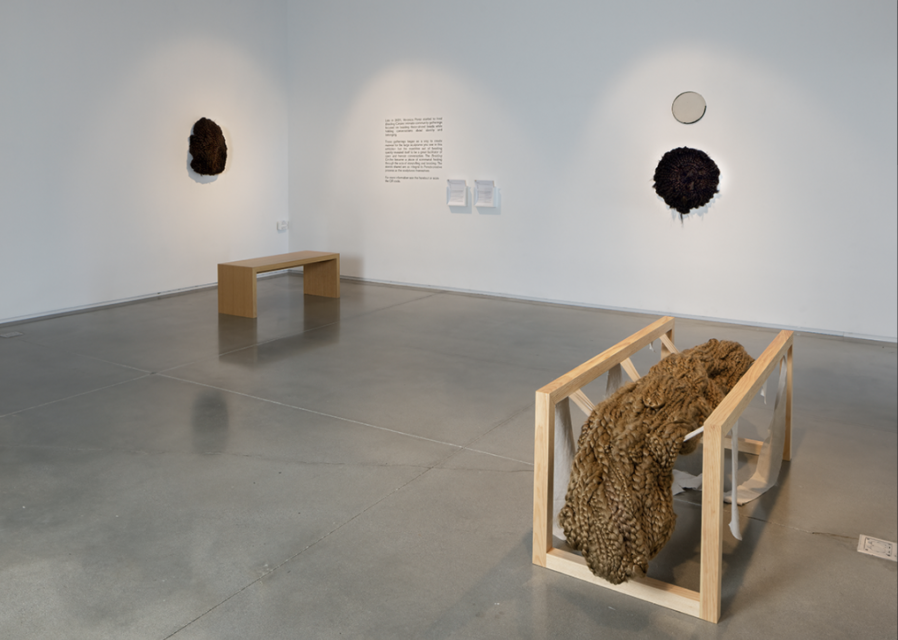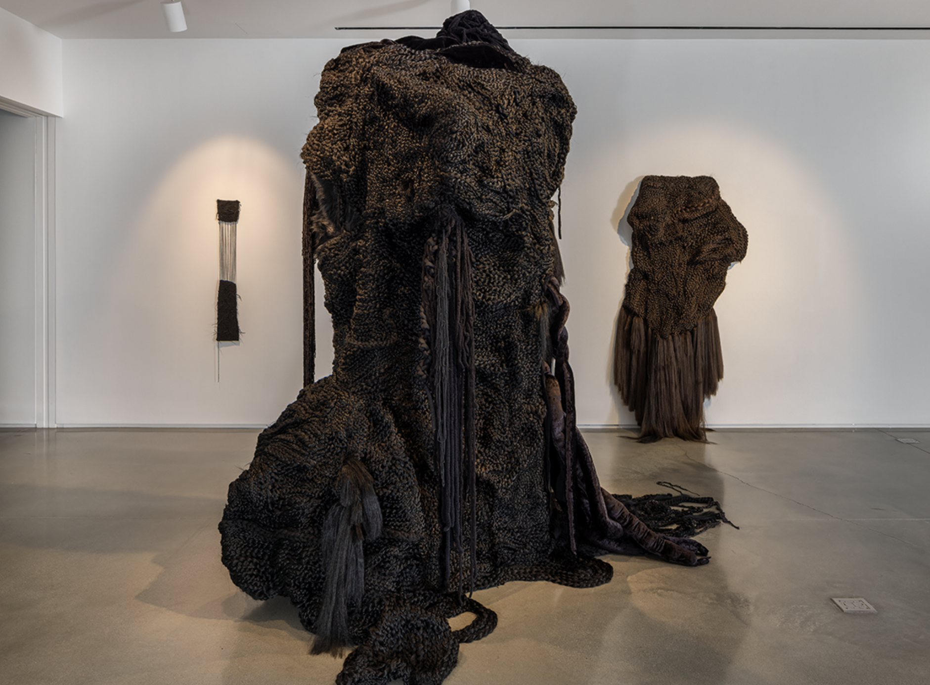 Veronica Perez’s solo exhibition features a new body of sculptures made from braided and weaved artificial hair, a material that Perez has been deeply invested in for the past three years. The artist’s intricately detailed works act as monuments to feelings of love, loss, and grief and are symbols for exploring the forgotten and stolen histories of the Latinx diaspora.