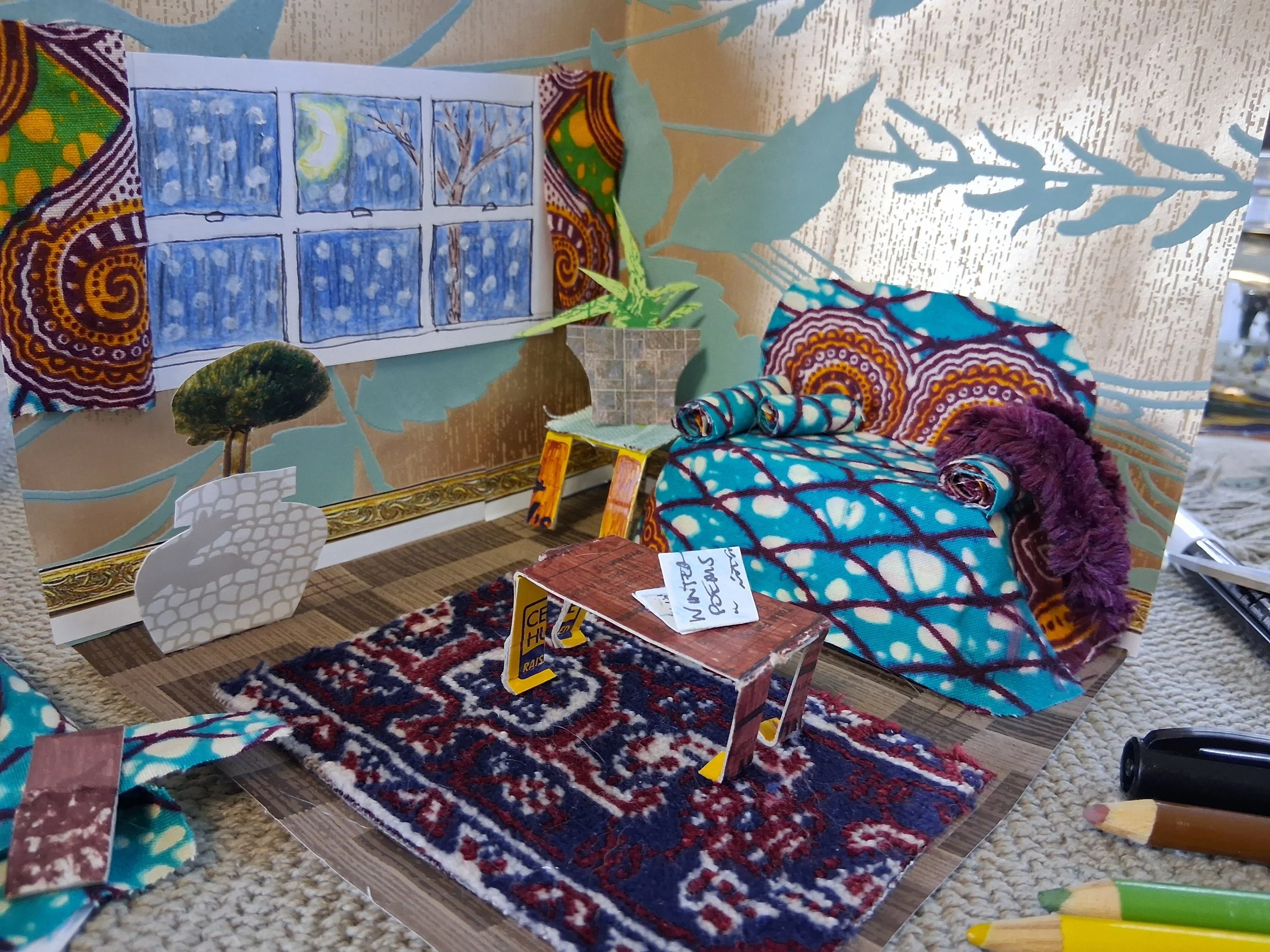 While we spend more time indoors for the winter, the patterns and textures that surround us provide comfort and warmth. Design and decorate your own miniature versions of cozy spaces with a variety of collage and assemblage materials. Inspired by the interior scenes of Biennial exhibiting artists Thomas Connolly, Janice L. Moore, James Mullen, Winslow Myers, Alison Rector, Gail Spaien and Kathy Weinberg.