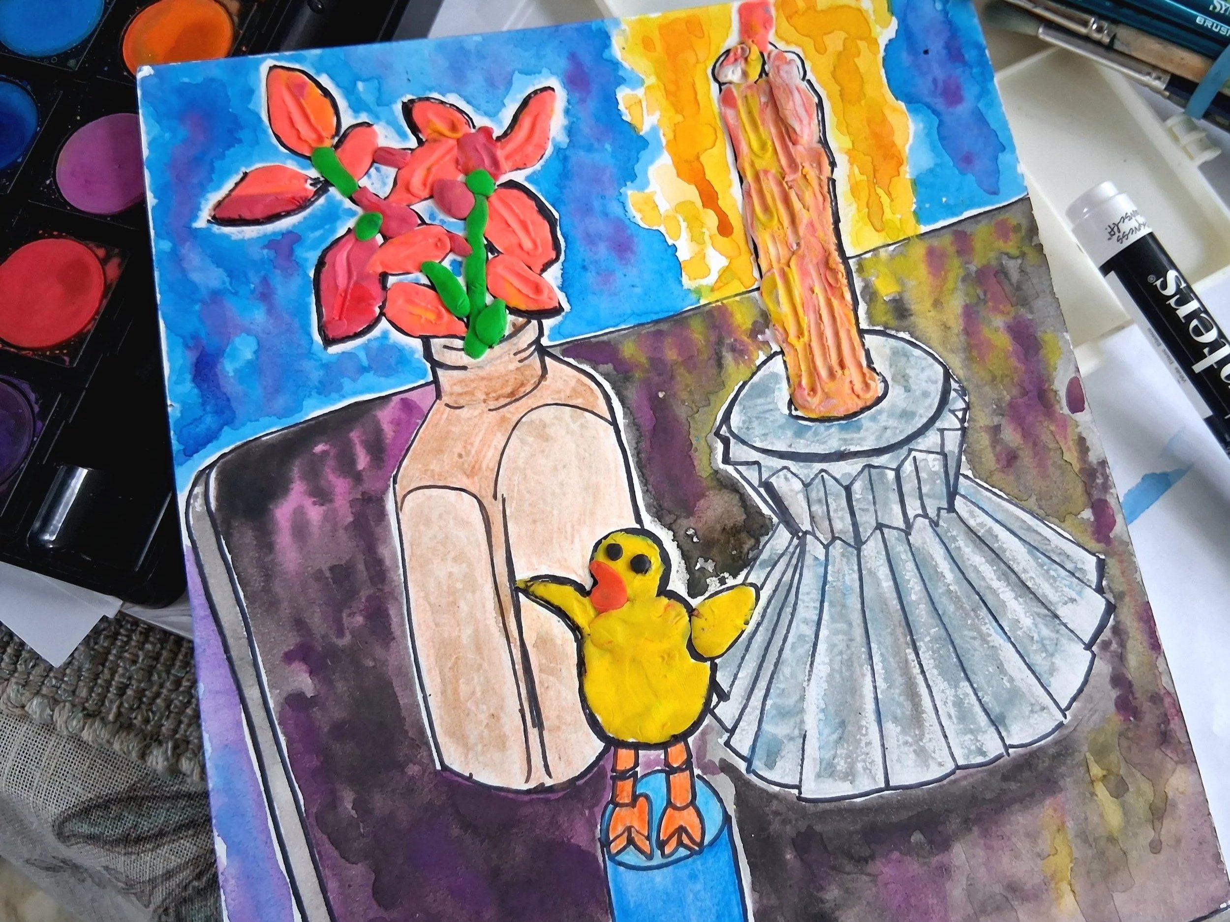 Inspired by Leon Benn’s The Violet Hour, join us to reimagine still life objects in a new environment of fantasy and transformation. Combine bright mark making with layers of polymer clay to create a mixed media picture in which objects that at first seem ordinary morph into the unexpected.