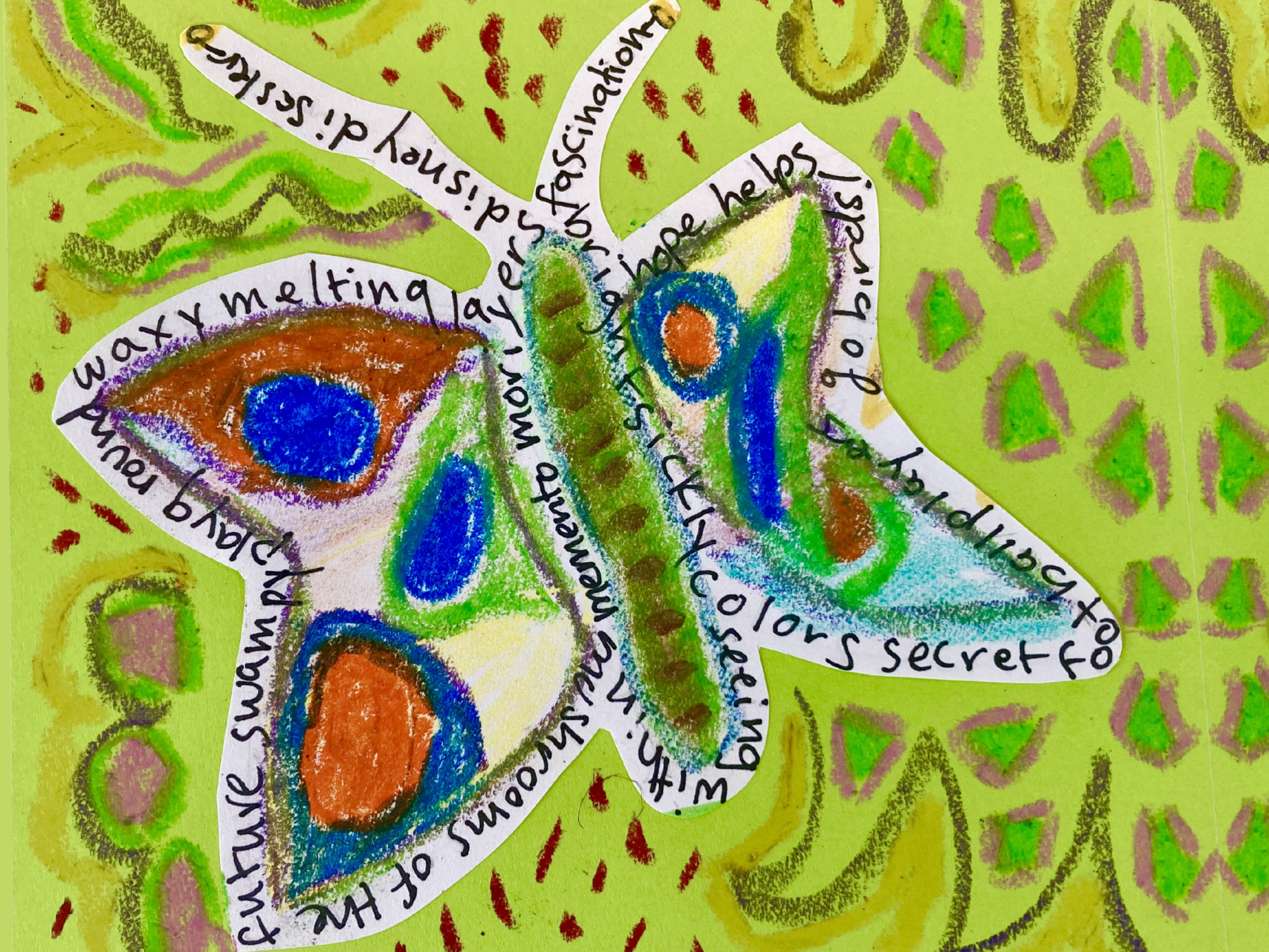 This month in the ArtLab, practice the art of ekphrasis - a form of poetry that vividly describes a work of art. View Leon Benn's The Violet Hour and describe what you see, feel, and imagine in a poem that forms a shape you spotted in one of Benn's paintings. Look closely for symbols that hide within the many layers of these adventurous works! Decorate your shape poem with color and pattern.
